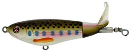 Top Water wobler med action i overfladen - den roterende bagdel på woblerens krop, laver de vildeste plask og vibrationer i vandet som hverken aborre og gedder kan modstå.